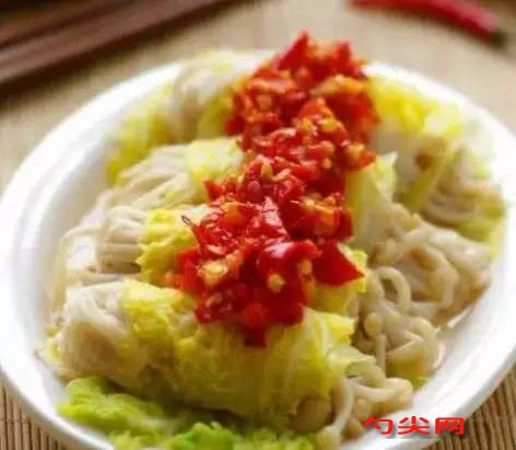 核心提示:鮮香剁椒金針卷的做法材料:金針菇100g、白菜葉5片配料:剁椒適量做法:1. 鍋中注入適量水,水燒開后,將金針菇洗凈、切去根部,