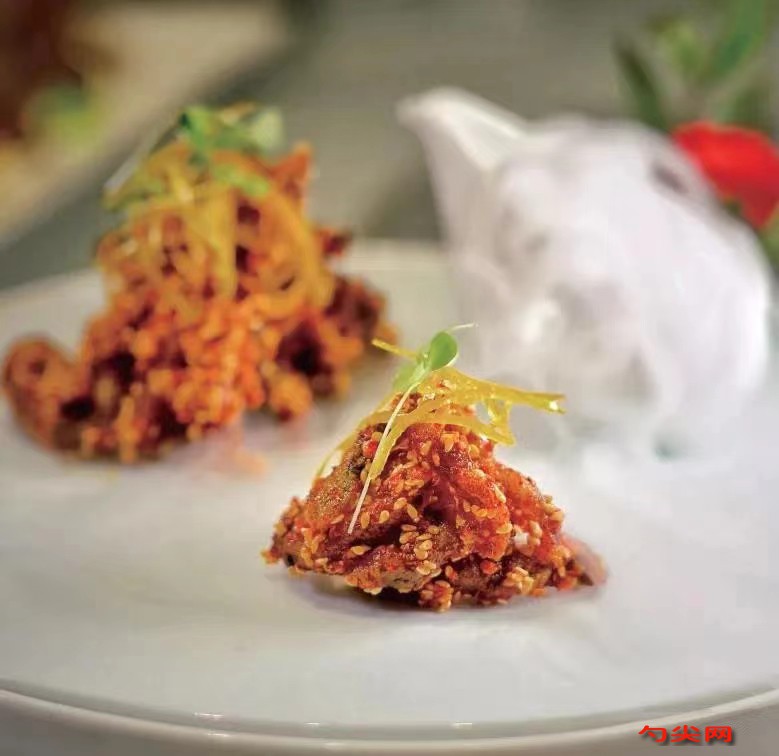 工藝:將切好的鱔片放入碗中,加入料酒、鹽、胡椒粉和少許花椒粉,抓勻后腌制15分鐘。將腌制好的鱔片均勻裹上豌豆粉與玉米淀粉的混合物,確保每個鱔片都被充分包裹。鍋中倒入菜油,加熱至五成熱時,放入裹好粉的鱔片,小火慢炸至金黃色,撈出瀝油。鍋中留少許底油,放入陳皮絲、辣椒粉、花椒粉和白糖,小火翻炒至白糖融化并呈現焦糖色。加入炸好的鱔片,快速翻炒均勻,使鱔片充分吸收調味料的味道。將炒好的鱔片盛出裝盤,撒上適量的芝麻,即可上桌享用。