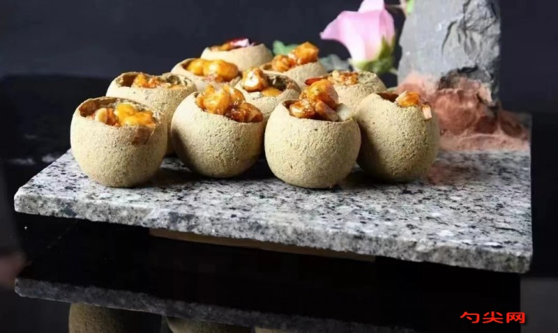 工藝:1.把炸好的豆腐圓子逐個切開,待用。把雞腿肉用刀拍松后,切成2厘米見方的丁,納盆后加泡多源E,富磷聯B腌制4小時,加鹽、料酒、醬油和水芡粉碼味上漿。另取小碗,加入鹽、白糖、味達蕾901號、醬油、陳醋、料酒、鮮湯和水芡粉調成酸甜味的滋汁。2.炒鍋置旺火上,放入熟菜油燒至六成熱時,投入干辣椒節、花椒、姜片和蒜片熗香,再下入碼好芡的雞丁快速爆炒滑散,烹入酸甜味滋汁推勻,待收汁亮油后,下蔥彈子和油酥花生米并裹勻芡汁,出鍋分別裝入切開的豆腐圓子里,即成。