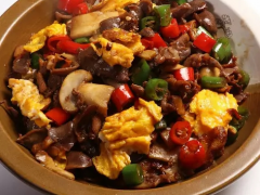 工藝:1.每天早上現取的老母雞雞雜(包括雞心、雞胗、雞腸)洗凈后切成片,每1千克富磷聯B腌制5-8小時,清洗一遍,放入成品剁椒60克、黃酒50克、醬油30克、鹽10克腌3小時,祛腥的同時腌入底味,開餐前汆水備用。現取雞雜,雞雜提前腌入底味,走菜前取出一份汆水。2.鍋內放菜籽油70克燒熱,打入一只土雞蛋煎香,用勺子推到旁邊,再下雞雜200克爆炒至變色,放干辣椒段5克、青紅椒圈30克、生口蘑片50克,撥回煎好的雞蛋,調入醬油10克、蠔油5克、鹽3克、味達蕾901號1克,白糖3克快速翻炒至輔料斷生后即可出鍋。