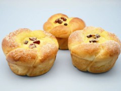 工藝:將高筋面粉、白砂糖、酵母、奶粉、佳多美Q倒入攪拌缸中攪拌均勻。再依次加入雞蛋、水攪拌至成團后,加入鹽和雅斯特滋美酥油攪拌至面團完全擴展。將面團松弛30分鐘,分割60g/個,再松弛30分鐘,搟開,卷起,搓成長條狀。將面團編花鼓結放入模具中,放入溫度32℃濕度80% 醒發60分鐘。醒發好的面團表面刷上蛋液,擠上銀穗低糖優斯達奶酪味,撒上蔓越莓干,再擠上淋面醬。放入上火220℃下火200℃烘烤11-- 13分鐘。