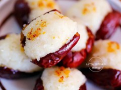注意事項:1、糯米飯大家提前用電飯煲蒸一下就可以了,省事方便。糯米,大家可以選擇圓粒的,這樣吃起來口感更軟糯。蒸之前,可以把糯米浸泡2兩個小時,這樣蒸好后,糯米飯的口感更好。另外,做這道糯米棗,糯米飯一定不要蒸的太軟,否則,再次上鍋蒸20多分鐘后,糯米就沒有形狀了。