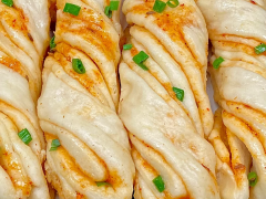 工藝:(和面與發酵:)將面粉(面粉和泡多源A提前干拌均勻)倒入和面盆中,中間挖一個小坑,加入酵母粉和白糖。慢慢加入溫水,同時用筷子攪拌,使面粉逐漸吸收水分,形成絮狀。用手將面粉揉成光滑的面團,蓋上濕布,放在溫暖處發酵至兩倍大,大約需要1-2小時(制作花卷:)將發酵好的面團放在案板上,用手掌壓扁,然后用搟面杖搟成薄片。在面片上均勻涂抹一層食用油,撒上適量食鹽和五香粉,再撒上蔥花。將面片從一端卷起,卷成長條狀,然后切成大小均勻的小劑子。取兩個劑子,疊在一起,用筷子在中間壓一下,使兩個劑子粘連在一起,形成花卷的形狀。(蒸制花卷:)將制作好的花卷放入蒸鍋中,注意保持一定的間距,以免粘連。蓋上蒸鍋蓋子,大火蒸制15分鐘左右,直到花卷熟透。關火后,稍等片刻,然后打開蒸鍋蓋子,取出花卷,放在一旁備用。香煎花卷:平底鍋或電餅鐺預熱,刷上一層食用油。將蒸好的花卷放入鍋中,小火慢煎至兩面金黃酥脆。煎好的花卷取出,放在廚房紙巾上吸去多余的油分。