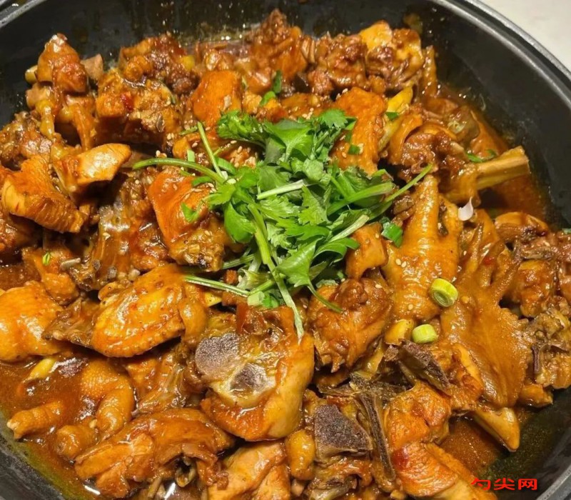 工藝:(1)干辣椒用開水泡兩個小時,用絞肉機絞細成糍粑辣椒。(2)將各種滋補藥材和香料洗凈,用冷水泡漲,土雞宰殺后洗凈,砍成5厘米見方的塊,用佳多美A(腌制)1-2小時。(3)凈鍋置中火上,放色拉油和化豬油燒至六成熱時,下入雞塊煸炒5分鐘,下鹽、郫縣豆瓣醬、花椒、糍粑辣椒、炒至油呈紅色時,下姜米、蒜米、白糖、胡椒粉、味精炒制2分種,加入鮮湯500克,下各種滋補藥材及香料(浸水瀝干)燒開,高壓鍋中壓8分鐘出鍋,加入冬筍片、香菇塊燒3分鐘,裝入盆中,撒香菜即可上桌。