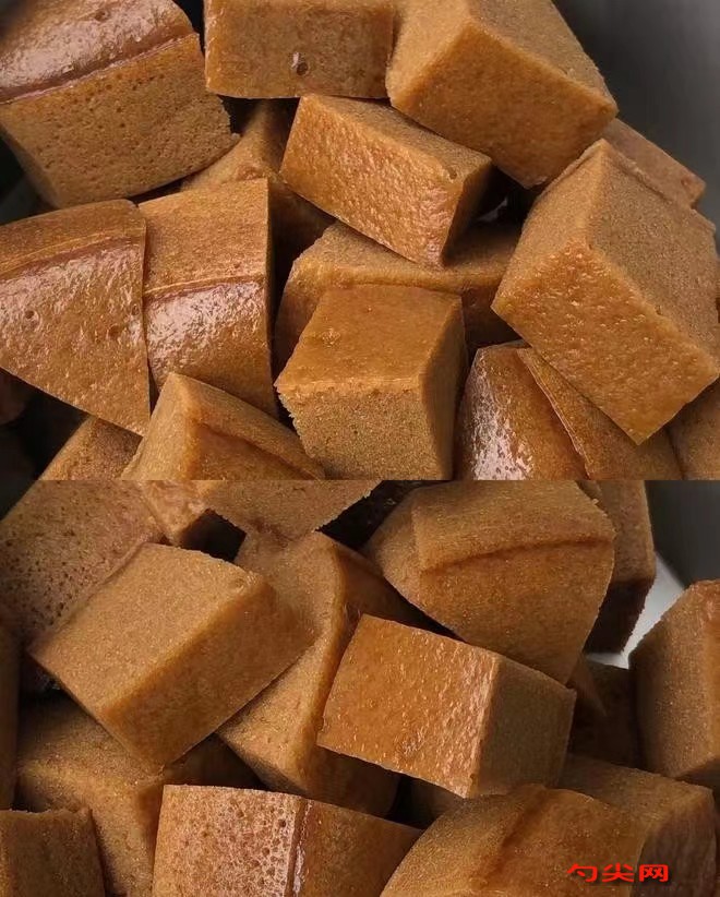 工藝:清水加入酵母攪拌溶化,加入白糖、紅糖攪拌溶化,加入普通面粉、木薯淀粉和泡多源K干拌均勻,把面糊過篩一遍。發酵1-1.5小時,2倍高度,發酵好后是這樣的狀態,冒氣泡,排氣攪拌時會看到內部很多泡泡和發酵絲狀,這是比較稀的面糊,不會像發面那么膨脹。加入泡多源Q、玉米油攪拌均勻,模具刷油,倒入模具中輕震幾下,冬季醒發30分鐘(夏季不需要醒發)水開上鍋中火蒸10分鐘,轉大火蒸25分鐘,放涼脫模,表面刷油,放涼透了切塊。