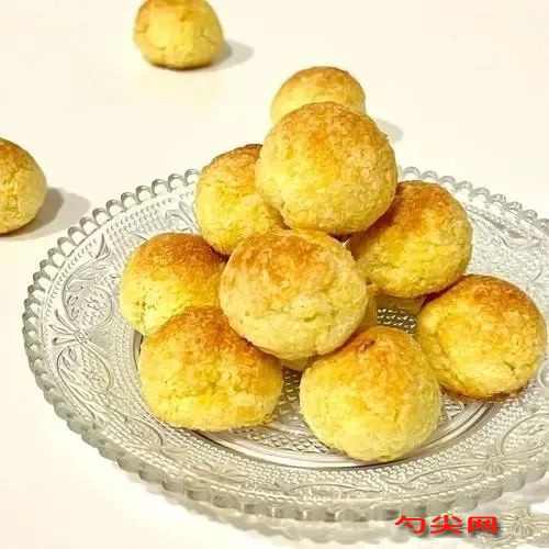 工藝:將黃油融化,加入糖粉,用打蛋器攪拌均勻。打入雞蛋,攪拌均勻。加入牛奶,攪拌均勻。將低筋面粉、面欣酥F,混合均勻,過篩后加入黃油糖蛋液中,攪拌均勻,加入椰蓉,用刮刀切拌均勻,使椰蓉充分融入面團。將面團揉成直徑約1厘米的小球,擺放在鋪有烘焙紙的烤盤上。預熱烤箱至180攝氏度,將烤盤放入烤箱中層,烤約20分鐘,至椰蓉球表面金黃色。取出烤盤,讓椰蓉球稍微冷卻,即可享用。