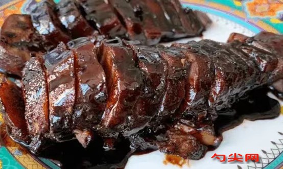 8.用鏟子將醬汁澆在露在醬汁外的豬舌上。