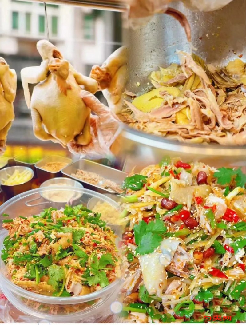脆皮手撕雞的擺攤做法:手撕雞一般選用紅毛蛋老雞為最佳,這種雞兼顧價格低和肉質口感脆的兩個特點。