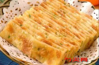 待一面金黃后翻面,繼續(xù)烙制另一面至金黃且熟透。