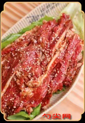 腌制配方1:羊肉500克(腿肉最好)、精鹽15克、胡椒粉5克、芝麻50克、小茴香3克、孜然5克、花椒粉5克、面粉15克、辣椒粉少許。揉搓拌勻后,腌制3小時以上。