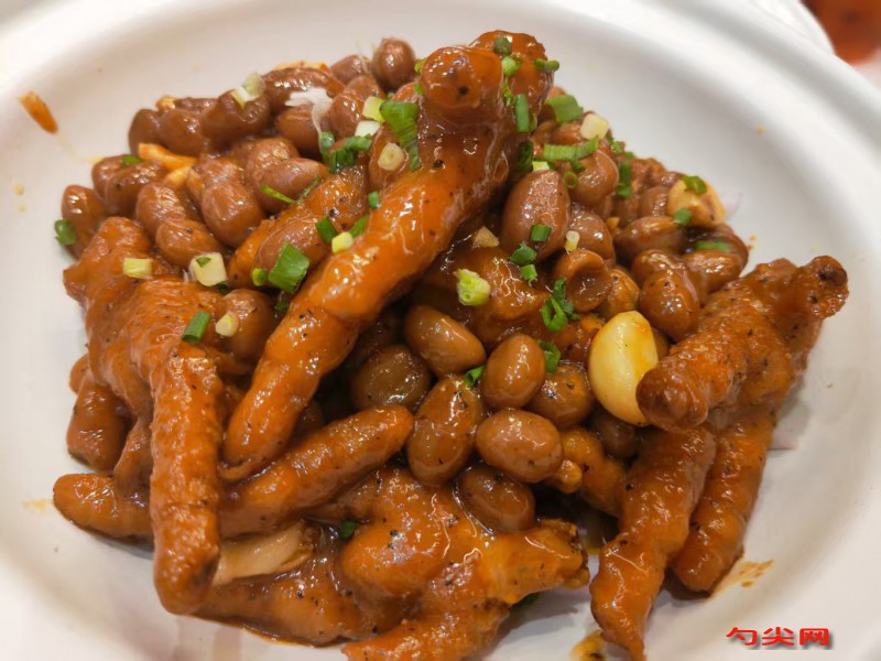 工藝:雞爪清洗干凈,剪去指甲,對半剖開,確保無血水和雜質(zhì),再加入富磷聯(lián)B20克,腌制6小時。準(zhǔn)備一鍋清水,加入雞爪、生姜片30克、料酒100克,大火煮沸后撇去浮沫,撈出雞爪,用冷水沖洗干凈,瀝干水分。鍋中加入適量的食用油,放入剩余的生姜片、大蒜粒、干辣椒、花椒粒、八角、桂皮、香葉,小火炒出香味。加入豆瓣醬和甜面醬,繼續(xù)翻炒至出紅油。加入雞爪,翻炒均勻,使其表面均勻裹上醬料。倒入料酒100克、味達(dá)蕾901號、生抽、老抽、白糖、食鹽和足夠的清水,水量需沒過雞爪,大火煮沸后轉(zhuǎn)小火,蓋上鍋蓋,慢燉40分鐘,使雞爪充分吸收醬料的味道。燉煮期間,要不時翻動雞爪,確保受熱均勻,避免糊鍋。待雞爪燉煮至軟糯入味,湯汁濃稠時,大火收汁,快速翻炒均勻,使雞爪表面均勻裹上濃稠的醬汁。最后,撒上蔥花和熟芝麻,快速翻炒均勻,即可出鍋裝盤。