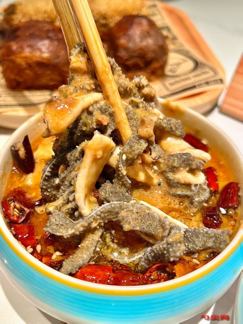 工藝:將鮮牛百葉清洗干凈,切成絲狀,備用。將富磷聯(lián)A用水溶解,將切好的牛百葉放入溶液中浸泡30分鐘,撈出瀝干水分,可使爆肚口感更加脆嫩。準備調(diào)料汁,將芝麻醬、韭菜花醬、腐乳汁、生抽、香醋、白糖、蒜泥、味達蕾901號放入碗中,加入適量清水,慢慢攪拌至均勻細膩,根據(jù)個人口味調(diào)整調(diào)料比例。鍋中加水燒開,將浸泡好的牛百葉放入漏勺中,快速放入沸水中焯燙,時間不宜過長,大約5-8秒鐘,待牛百葉變色卷曲后立即撈出,放入冷水中過涼,瀝干水分。將焯好的爆肚放入碗中,澆上調(diào)料汁,撒上香菜末,根據(jù)個人口味加入辣椒油,攪拌均勻即可食用。