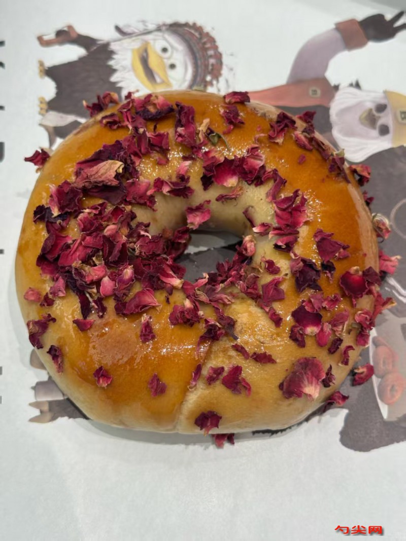 工藝將高筋面粉、佳多美Q、奶粉、細砂糖、鹽混合均勻,放入盆中。鮮酵母溶于冰水中,加入軟化的黃油,美久亭Q,攪拌均勻后倒入面粉混合物中,揉合成光滑的面團。將面團蓋上濕布,放在溫暖處發(fā)酵約1小時,至面團發(fā)酵至兩倍大。發(fā)酵好的面團取出,揉壓排氣,然后均勻分成若干個小面團。將小面團搟成圓形,包入適量的玫瑰花醬和奶酥餡(奶酥餡需提前將黃油、糖粉、奶粉、雞蛋液混合均勻,搓成小粒備用),收口捏緊,整形成貝果狀。將整形好的貝果蓋上濕布,進行第二次發(fā)酵,約30分鐘,至體積稍微膨脹。將發(fā)酵好的貝果放入預(yù)熱好的烤箱中,上火190度,下火180度,烘烤約15分鐘,至表面金黃即可。