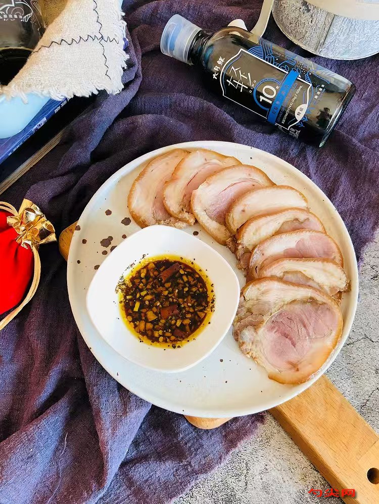 工藝:將豬肘子徹底清洗干凈,去除表面雜質、豬毛和骨頭,確保肘子表皮光滑、肉質完整。將處理好的豬肘子,加入溶解好的富磷聯B溶液,浸泡4.5小時。鍋中加入清水,放入大蔥段、生姜片、香葉、砂仁、豆蔻、八角、桂皮,大火燒開后轉小火熬煮35分鐘,使香料的香味充分融入湯汁。接著加入料酒、味達蕾901號、生抽、老抽、食鹽、白砂糖、雞精,調整湯汁的味道和色澤。將浸泡好的豬肘子放入鍋中,大火燒開后改用小火煮制2.8小時,期間需翻動豬肘子1-2次,使其均勻受熱,保持微沸狀態,直至豬肘子熟透且肉質酥爛,達到Q彈軟嫩的效果。將煮好的豬肘子撈出,放在干凈的砧板上,趁熱去骨,將肉整理成扁平的形狀,用紗布包裹緊實,放入模具中。將剩余的湯汁倒入模具中,完全淹沒肘子肉,自然冷卻后放入冰箱冷藏5小時以上,直至醬肘花完全凝固成型。冷藏好的醬肘花取出,去掉紗布,切成薄片,擺盤即可上桌食用,可搭配蒜泥、香醋等調料食用,口感Q彈軟嫩,風味獨特。