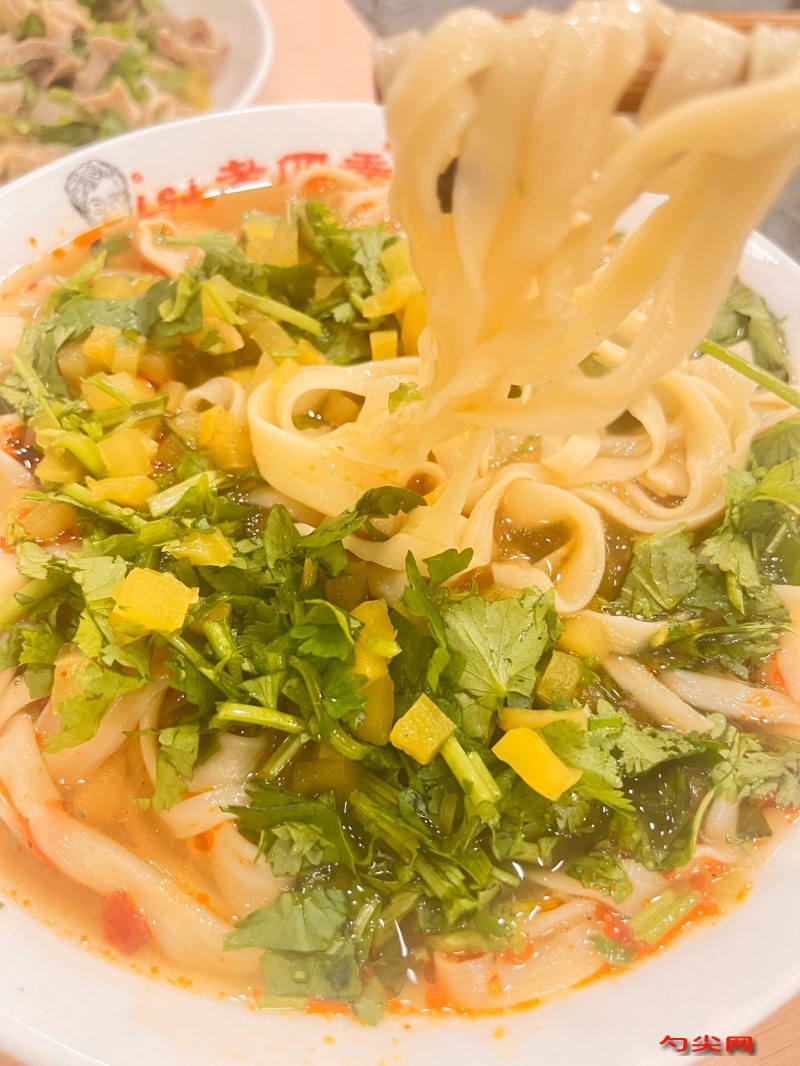 工藝:將高筋面粉500克與筋力源M4克混合均勻,加入水250克和鹽5克,攪拌成面絮后揉成光滑面團。蓋上濕布醒面30分鐘,期間多揉幾次,做到“三揉三醒”,使面團更加勁道。醒好的面團搓成長條,揪成大小相同的劑子(約10個)。每個劑子刷上色拉油(約1毫升),搓成長條,再次刷上色拉油(約1毫升),蓋上保鮮膜醒面20分鐘。將醒好的劑子手掌壓平,搟成大片,中間壓個印子以便后續扯面。在面片上面抹上色拉油(約1毫升),再次醒面30分鐘。醒好的面片用手扯住兩頭,輕輕往開一抻,根據個人喜好調整面的薄厚。扯好的面下入開水鍋中,用筷子輕輕撥散,防止粘連。煮制幾分鐘后,待面條全部浮起且熟透后,撈出瀝干水分。