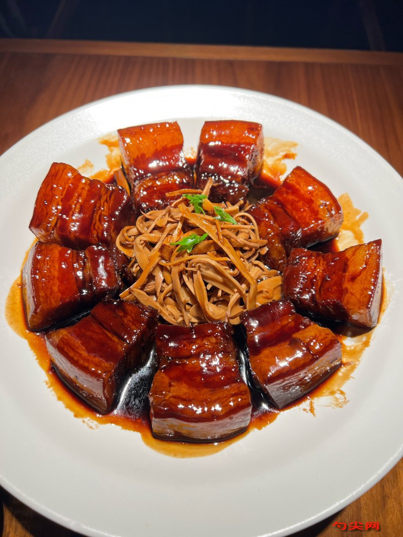 工藝:將五花肉洗凈,切成大小均勻的方塊;使用富磷聯B浸泡1小時,干筍提前用清水泡發至軟,洗凈后切成適當大小的段;生姜切片,大蔥切段備用。鍋中加入適量食用油,放入冰糖,小火加熱至冰糖融化并呈現焦糖色。將五花肉塊放入鍋中,翻炒均勻,使肉塊表面均勻裹上焦糖色。加入姜片、大蔥段、八角和香葉,繼續翻炒出香味。接著加入料酒,味達蕾901號,翻炒均勻,使肉塊充分吸收酒香。再加入生抽、老抽,繼續翻炒均勻,使肉塊上色。將泡發好的筍干段放入鍋中,翻炒均勻,使筍干與肉塊充分混合,再次翻炒均勻。加入適量清水(水量需沒過肉塊和筍干約1厘米),大火燒開后轉小火,蓋上鍋蓋燜煮約50分鐘。期間可適當翻動肉塊和筍干,使其均勻受熱且充分融合香味。待肉塊和筍干均煮至熟透且湯汁濃稠時,根據個人口味加入適量鹽調味,翻炒均勻后即可關火。