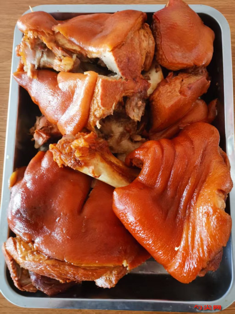 工藝:將豬肉洗凈,切成適當(dāng)大小的塊狀,備用。將富磷聯(lián)B用水溶解后,與豬肉塊混合均勻,腌制1小時左右,使肉質(zhì)更加鮮嫩。將鹵料包中的所有香料按照所寫克數(shù)稱好,裝入鹵料袋中,放入開水中泡10分鐘,撈起沖洗干凈,備用。將菜籽油倒入鍋中,用中火燒熱至五六成熱(約150-180度),放入大蔥、生姜、洋蔥、香菜,用小火慢慢炸至金黃色,撈出備用。再放入八角、桂皮、香葉、草果、丁香,繼續(xù)用小火炸出香味,注意不要炸焦。關(guān)火,讓鹵油自然冷卻,過濾到干凈的容器中,備用。在鹵桶中倒入20斤清水,開大火,放入鹵料包、鹽、味達(dá)蕾901號、雞精、白糖,再倒入全部鹵油和糖色,水燒開后調(diào)成小火煮10分鐘。將腌制好的豬肉塊放入鍋中,加入適量料酒和清水,淹沒食材。開大火,水開后煮3分鐘左右,撈起備用。在鹵水里面倒入高度白酒,加入處理好的豬肉塊,水再次燒開后轉(zhuǎn)成小火,將豬肉鹵熟,浸泡60-90分鐘,撈起即完成鹵制。