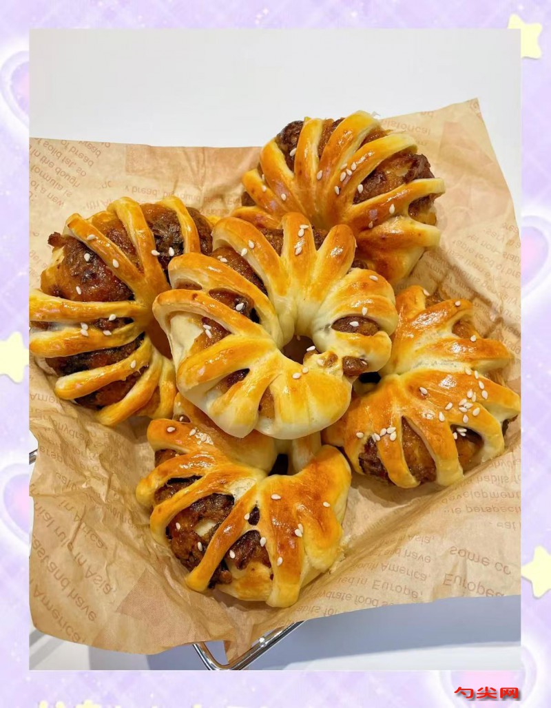 配方:低筋面粉5000克,高筋面粉500克,面欣酥F20克,美久亭Q5克,黃油600克,細砂糖800克,雞蛋4個,牛奶200毫升,鹽15克,香草精適量。