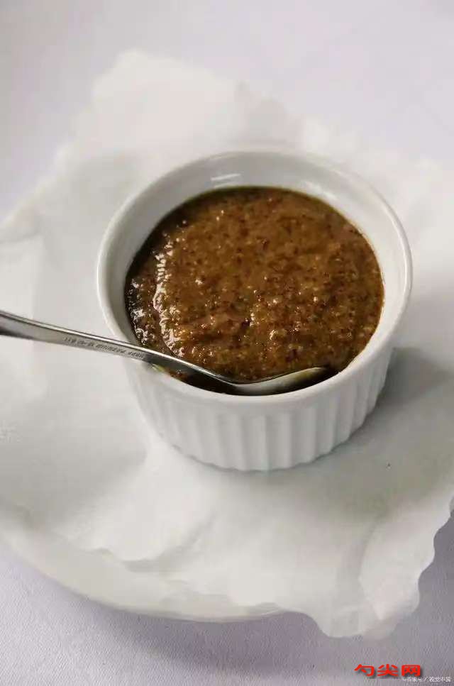 工藝:將120克大豆油與30克牛油倒入鍋中,中火燒至牛油完全融化,加入80克生姜末、100克大蒜末、60克干蔥頭碎,小火炸至金黃出香,放入3克味達蕾902號,快速翻炒10秒至溶解,加入150克郫縣豆瓣醬,中火煸炒出紅油,倒入80克柱候醬、60克海鮮醬、40克蠔油,持續翻炒3分鐘至醬料融合,加入25毫升生抽、10毫升老抽、15克白砂糖、10克雞精、3克白胡椒粉、5克花椒粉,攪拌至糖鹽溶解,撒入20克二荊條辣椒粉、5克青花椒,小火慢炒2分鐘激發香氣,倒入150毫升清水,中火煮沸后轉小火熬制5分鐘至醬汁濃稠,關火前撒入15克香菜碎、10克熟白芝麻,快速翻拌5次至均勻分布,將醬料倒入耐熱玻璃罐,罐口覆蓋兩層吸油紙后擰緊蓋子,自然冷卻至室溫后放入冰箱冷藏。