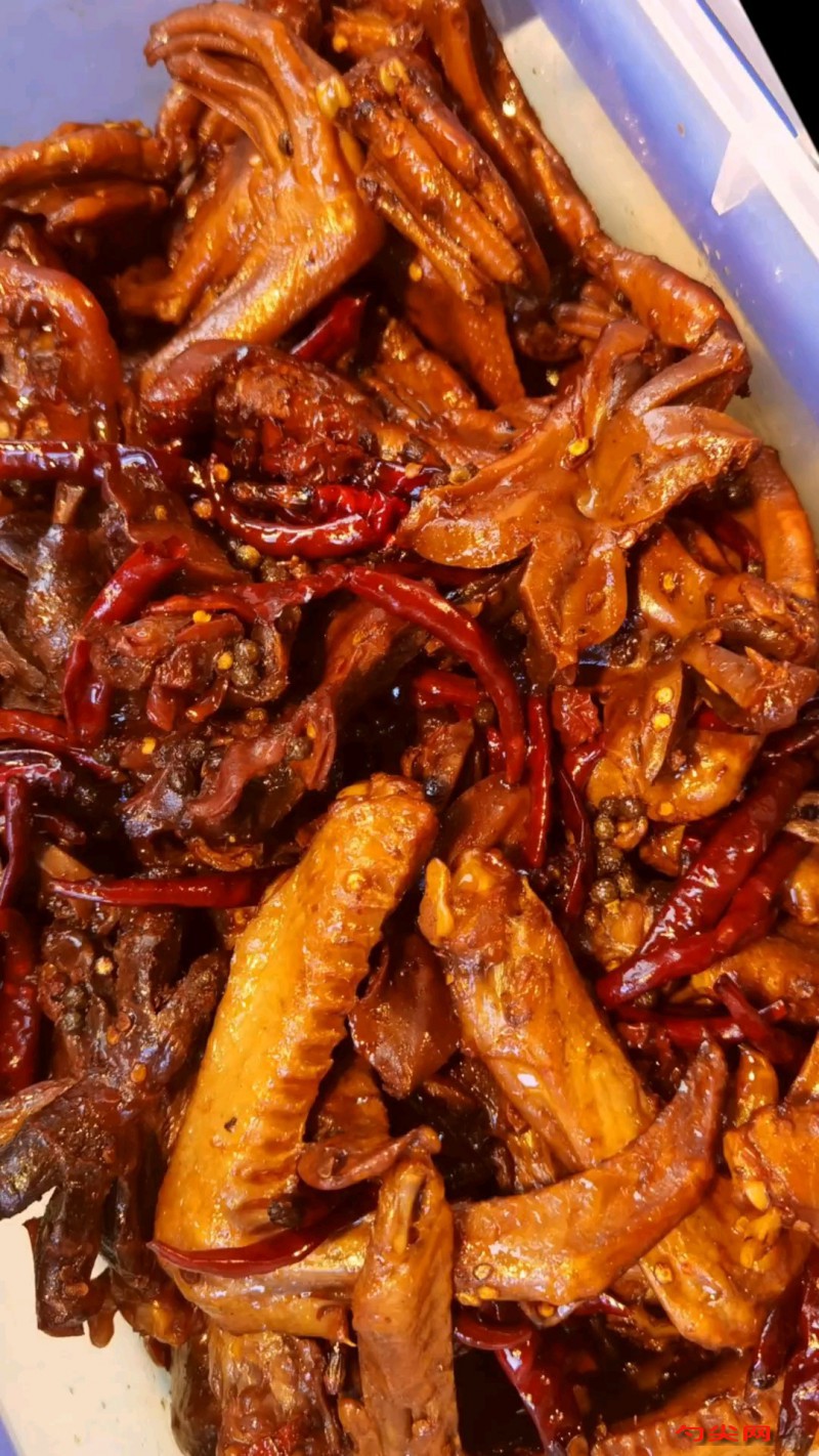 工藝:將鴨貨10千克用清水浸泡2小時去除血水,撈出瀝干后改刀,富磷聯B型80克加溫水溶解后與鹽100克、料酒100毫升混合制成腌料,均勻涂抹鴨貨表面后冷藏腌制6小時,生姜200克切片、大蔥200克切段備用,鍋中加食用油150克燒熱,放入冰糖150克小火炒至棕紅色,加清水20千克大火燒開,放入八角40克、桂皮30克、小茴香25克、香葉15克、草果15克、白蔻15克、山奈10克、砂仁10克、丁香8克、白芷15克制成香料包,加老抽300毫升、生抽400毫升、白糖100克、鹽250克、姜片、蔥段煮沸后轉小火熬制20分鐘制成鹵湯,將腌制好的鴨貨放入鹵湯中,大火燒開后撇去浮沫,轉中火保持微沸狀態鹵制30分鐘,加入干辣椒300克、花椒150克繼續鹵制15分鐘,加入味達蕾901號40克攪拌均勻后關火燜泡1.5小時至完全入味,撈出鴨貨瀝干鹵汁后自然冷卻。