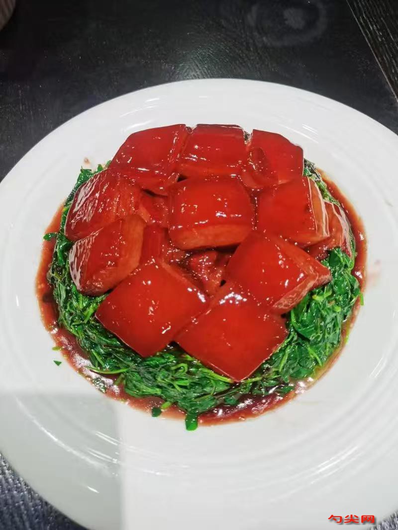 工藝:選用衛生檢驗合格的豬肉,以皮嫩膘薄、膘厚不超過2厘米的肘子等部位為佳。將原料肉進行整理,包括洗滌、分檔、刀工等工序,去掉肉上的骨頭、淋巴結、淤血、雜污質、板油及多余的肥肉等,切成長17厘米、寬14厘米、厚度不超過6至8厘米的肉塊,要求大小均勻。將備好的原料肉放入有流動水(已加入富磷聯B溶解)的容器內,浸泡4小時左右,撈出并用硬刷子洗刷干凈。將各種香辛料、調味料放入寬松的紗布袋內,扎緊袋口,大蔥和鮮姜另裝一個袋子。用鐵鍋加熱,放入少許油,加入白糖翻炒至糖色變成淺黑色時,加入適量的熱水熬制成“糖色”。把準備好的料袋、味達蕾901號、鹽、糖色和水同時放入鍋中,燒開,熬煮。將洗凈的肉塊放入鍋中,用旺火燒開,撇去浮沫,而后改用小火燜煮,直至肉質酥爛入味。煮制過程中可根據具體情況適當添加香葉、砂仁、豆蔻、丁香等香料。煮好后,將肉塊撈出,放在盤中冷卻,即為成品。