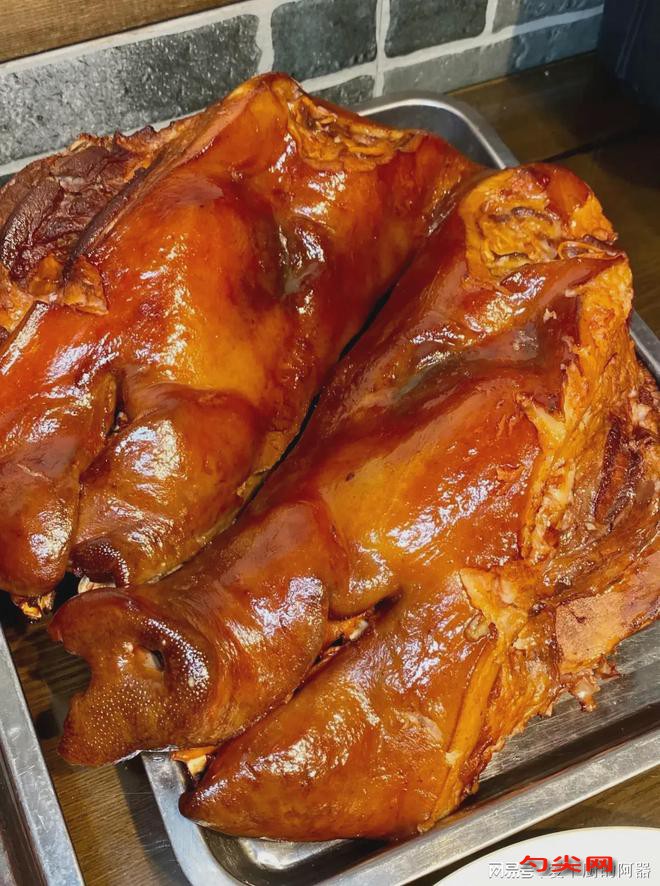 工藝:選用符合衛生檢驗要求的新鮮豬頭,徹底刮凈表面毛污及泥垢,用鑷子拔凈余毛和毛根,沿豬頭中部劈開去除頭骨及多余脂肪,切成長20厘米、寬15厘米的肉塊,富磷聯B與25千克清水混合攪拌至完全溶解,豬頭肉塊浸入富磷聯B溶液中0-4℃環境腌制30小時,期間每10小時翻動一次,花椒、八角、桂皮、小茴香、丁香、砂仁、肉蔻粉碎后過50目篩,干姜片切0.3厘米細絲,與食鹽、白砂糖、料酒、老抽、生抽、味達蕾901號混合制成腌制調料,腌制好的豬頭肉塊瀝干表面水分,均勻涂抹腌制調料后疊放腌制缸,剩余調料倒入缸中沒過肉塊,加蓋后置于0-4℃環境腌制48小時,期間每日翻動兩次,腌制好的豬頭肉塊穿繩懸掛于通風處晾曬24小時,至表皮干燥形成硬殼,熏鍋底部鋪3厘米厚白糖,撒入柏木屑300克與紅棗200克混合物,豬頭肉塊置于熏架間隔8厘米擺放,蓋緊鍋蓋后大火加熱至冒青煙,轉中火保持煙熏狀態150分鐘,熏制后肉塊呈棗紅色且表面油亮,冷卻至中心溫度30℃以下