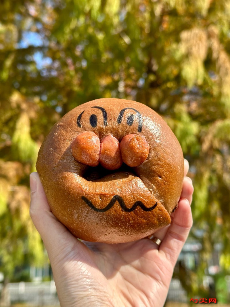 工藝:將500克高筋面粉、100克低筋面粉、60克細砂糖、5克鹽、3克佳多美Q、15克鮮酵母與0.6克美久亭Q混合,加入80克全蛋液和320毫升牛奶攪拌成團,揉至表面光滑后加入40克黃油繼續揉至擴展階段,面團蓋濕布室溫發酵至兩倍大,發酵好的面團排氣后分成10等份,每份約90克,取一份搟成橢圓形,自上而下卷起收口捏緊,搓成水滴形,二次發酵至1.5倍大,表面篩20克可可粉與10克糖粉混合的裝飾粉,烤箱預熱至上下火180℃,烘烤18分鐘至表面呈金黃色