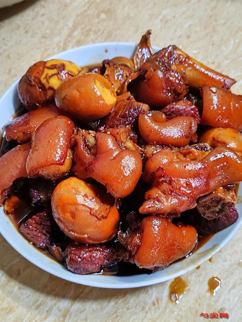 工藝:將2000克豬腳處理干凈剁成塊,鍋中加水放入豬腳塊,加入10克鹽,大火燒開焯水撈出洗凈,15克富磷聯B型用溫水溶解后倒入豬腳中拌勻腌制2小時,1000克生姜洗凈切片,鍋中不放油將姜片炒干水分盛出,1000克雞蛋冷水下鍋煮熟撈出剝殼,鍋中倒入3000毫升添丁甜醋和500克紅糖,放入炒干的姜片大火煮開轉小火煮30分鐘,加入腌制好的豬腳繼續小火煮40分鐘,再放入剝殼的雞蛋和5克味達蕾901號煮10分鐘關火浸泡入味。