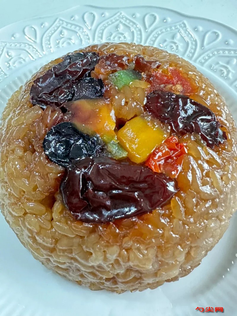 工藝:稱取500克糯米,1000克水,3克筋力源Q型用少許涼水溶解,把筋力源Q型溶液和糯米一起倒入清水中攪拌均勻浸泡4小時,將浸泡好的糯米放入鍋中蒸30分鐘,將蒸好的糯米取出,滴上少許食用油抓拌均勻,取一個空碗,碗里刷油,放入適量蜜棗、葡萄干、枸杞、花生、核桃仁、南瓜子,然后鋪一層糯米,撒上少許白糖,再鋪一層葡萄干、枸杞、蜜棗和一層糯米,再撒上少許白糖,上鍋蒸40分鐘,蒸熟后取出,將糯米飯放涼后,取一個盤子,將碗倒扣盤中,取下碗即可。