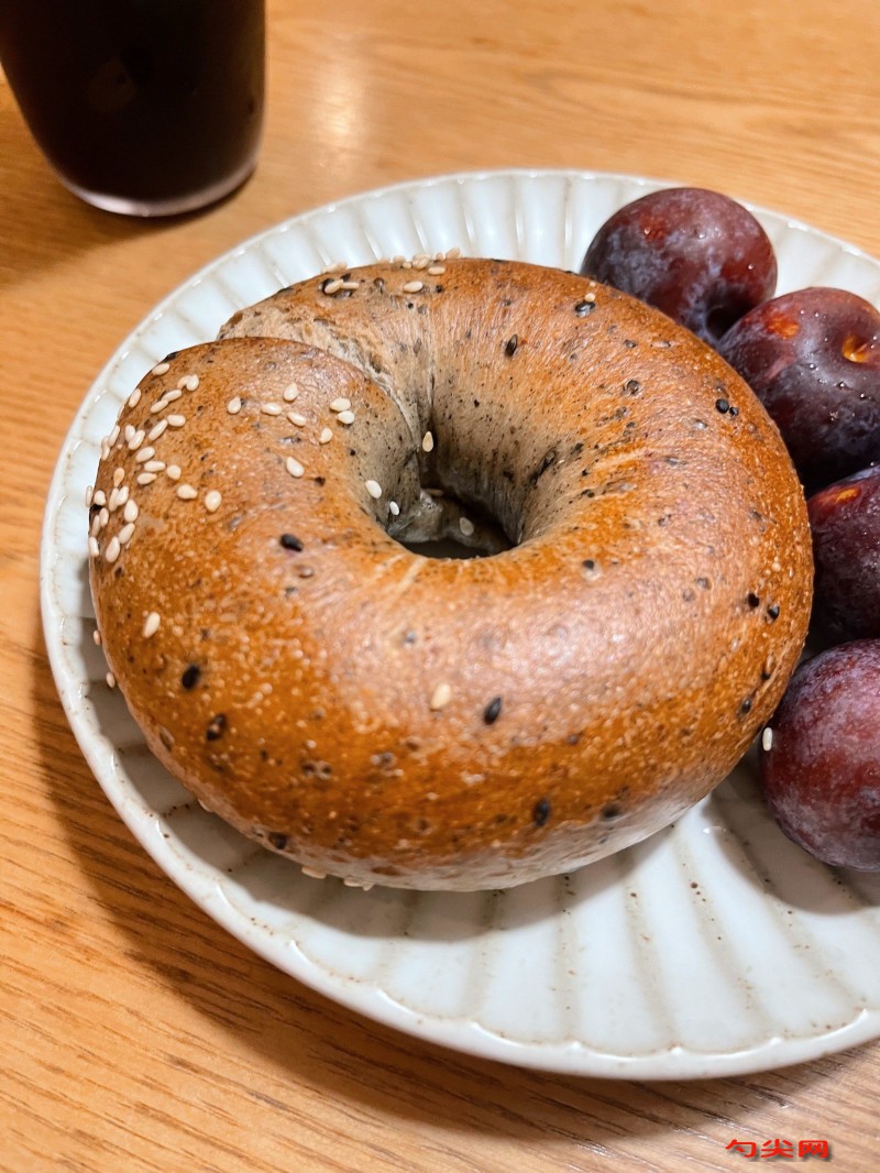 注意事項:揉面時要注意觀察面團狀態,達到七成筋即可,過度揉面或揉面不足都會影響貝果的口感和外觀。分割面團時要盡量保證每份大小均勻,這樣烤出來的貝果大小一致。整形時收口要捏緊,防止在發酵和煮制過程中散開。發酵的溫度和時間要控制好,發酵不足貝果不夠松軟,發酵過度則可能導致貝果變形。煮貝果的水要保持微沸狀態,避免水溫過高或過低影響貝果的口感和形狀。煮好后要及時裹上黑白芝麻,增加風味和美觀度。烤制時要根據不同的烤箱類型和烤盤數量調整溫度和時間,隨時觀察貝果的上色情況,防止烤焦。