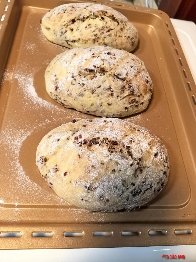 注意事項(xiàng):和面時水溫要適宜,避免影響酵母活性。發(fā)酵環(huán)境要溫暖濕潤,保證面團(tuán)發(fā)酵到位,但不能發(fā)酵過度。揉面要充分,使面團(tuán)達(dá)到理想狀態(tài)。加入堅(jiān)果和果干時要均勻揉進(jìn)面團(tuán),增加面包風(fēng)味和口感。整形時要注意手法,保證面包形狀規(guī)整。二次發(fā)酵很重要,能讓面包更松軟。篩粉要均勻,使面包表面色澤更好。割包時刀要鋒利,割出合適的紋路。烘烤時在烤箱底部放熱水能增加烤箱濕度,使面包表皮更酥脆。烘烤時間和溫度要根據(jù)烤箱實(shí)際情況調(diào)整,避免面包烤焦或不熟。制作過程要注意衛(wèi)生,食材要新鮮。