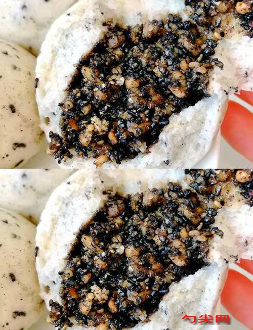 配方:中筋面粉500克,溫水約250毫升,干酵母5克,糖15克,佳多美Q型5克,黑芝麻餡料部分:黑芝麻60克,花生米20克,白砂糖40克,清水20克,溶解好的黃油40克(無黃油可用豬油),枸杞20克。