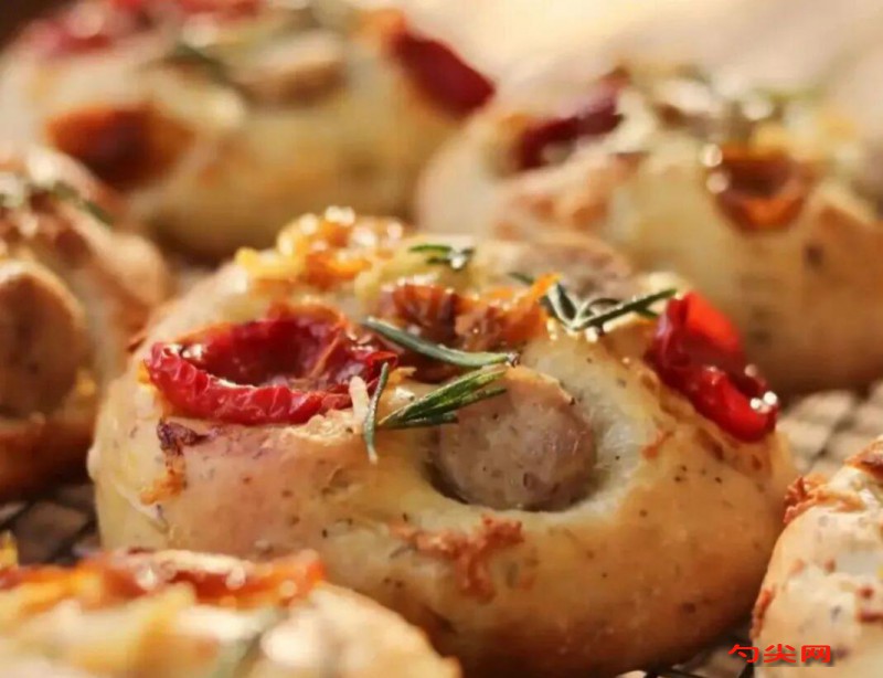 工藝流程:小番茄處理:小番茄對半切塊,撒入適量海鹽,適量黑胡椒,適量橄欖油,一起拌勻切面朝上倒入烤盤,180度烘烤30分鐘備用。面團制作:1、將山茶花面粉、T65、冰水,倍田4號0.5g、佳多美Q型水解30分鐘,加入鹽,魯邦種攪拌均勻,加入鮮酵母打至8成,全程慢速分3次加入后水,打至全筋,加入橄欖油、歐芹和黑胡椒拌勻即可。2、基礎發酵20分,翻面轉4度冷藏一夜。3、第二天拿出回溫30分鐘,分割150g/個,松馳20分整形,最終發酵30分。4、面團表面放上香腸丁,和烤熟的小番茄,撒少許馬蘇里拉芝士碎,進爐烘烤。5、烤爐提前預熱,上火280/下火210,蒸汽5秒,烘烤13-14分鐘,出爐刷光亮劑或橄欖油,裝飾迷迭香或珠蔥即可。
