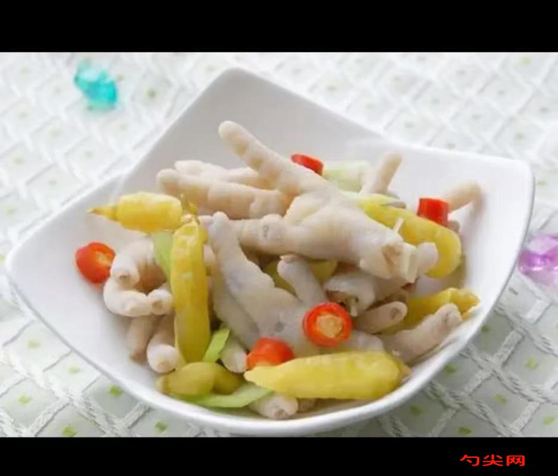 配方:水546克、富磷聯E型、味達蕾901號各適量、食鹽36克、白砂糖17克、白酒12克、生姜9克、泡椒80克、泡椒水250克。雞爪1500克