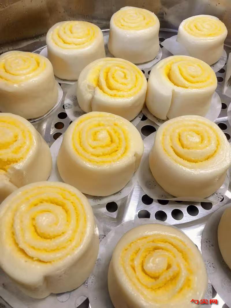 工藝:將3個(gè)雞蛋黃、70克椰蓉、40克白糖、30克黃油倒入容器中攪拌均勻調(diào)成椰蓉餡備用,250克普通面粉與5克泡多源G型干拌均勻后加入2克酵母、140克純牛奶、0.7克美久亭Q型攪拌成面團(tuán),面團(tuán)無(wú)需醒發(fā)直接放在案板上搟成長(zhǎng)方形薄片,將調(diào)好的椰蓉餡均勻鋪在面片上,像視頻中操作將面片對(duì)折后用切面刀切成1.5厘米寬的小劑子,取兩個(gè)劑子疊放在一起用筷子在中間輕輕按壓,將按壓后的劑子慢慢抻長(zhǎng)并卷兩圈形成生胚,將所有生胚放入蒸鍋中醒發(fā)至1.5倍大,開火蒸制15分鐘后燜2分鐘即可出鍋。