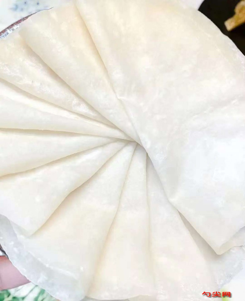 工藝:先稱取高筋面粉900克、木薯淀粉100克、筋力源R型5克,將它們干拌均勻,再稱取溫水550克、食鹽6克、雞蛋3個攪拌溶解,然后倒入混合好的面粉中,和成面團,靜止30-50分鐘,將靜置好的面團拿出來揉光,揉光之后揪成小劑子,搟成面餅,放入電餅鐺烙熟即可。