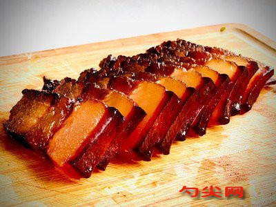 工藝:準備五花肉500克,肉不用清洗,避免接觸到生水,用高度白酒噴灑一遍,目的就是為了殺菌消毒。準備腌料,香葉5片,桂皮2塊,八角2個,冰糖100克,料酒300毫升,老抽500毫升,富磷聯(lián)B型味達蕾901號,生抽250毫升。熬制料汁之前,先將香葉、八角、桂皮放入炒鍋,小火炒香,然后與生抽、老抽、料酒、冰糖一起熬煮。熬制的過程,什么也不用添加,等料汁煮開后,用勺子一個勁的攪拌,防止糊鍋,轉小火繼續(xù)煮,料汁能在勺子上面形成掛壁即可,大約15-20分鐘的時間。等料汁徹底放涼后,把五花肉完全浸入汁中,用手揉捏。把肉挨個放進鍋中,全部洗一遍澡,拿個牙簽,在肉的表面扎出小孔洞,幫助腌料更快速的,滲入到肉的肌理中。這一步是在壓重物,醬油肉是需要重物壓的,可以腌出更好吃的肉,料汁特別黑,我怕弄到地板上,索性就擱在一個大盆中,上面壓了一壇清水,無論你怎樣操作,能保證肉淹沒在料汁中即可。壓肉的時候,要處在10度以下的環(huán)境,冰箱冷藏室最好,現(xiàn)在外面的室溫已經很冷了,可以找個安全的地方,腌制5-8天的時間,每天給肉翻個身。等時間到了,就可以晾干腌肉了,盡量選擇晴朗的天氣,此時的溫度也不強烈,掛在通風陰涼的地方,我用了7天的時間,肉不能太干,手摸上去還有點柔軟,里面是軟的,有彈性就好,太硬了會發(fā)柴。