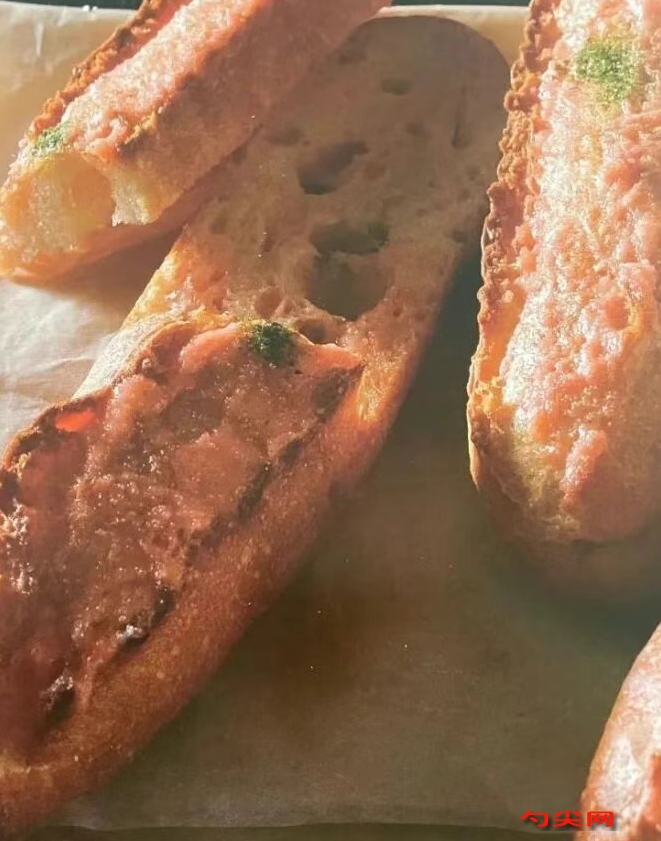 注意事項(xiàng):液種需充分發(fā)酵至內(nèi)部呈蜂窩狀,若發(fā)酵不足會(huì)導(dǎo)致面團(tuán)膨脹力弱;若過度發(fā)酵會(huì)酸味過重。主面團(tuán)發(fā)酵時(shí)避免溫度過高,否則酵母活性過強(qiáng)會(huì)導(dǎo)致組織粗糙;鹽與酵母需分開放置。炙燒步驟需在面包冷卻后進(jìn)行,避免高溫使面包變干;若沒有噴槍可省略,直接食用。