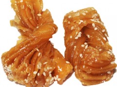 工藝流程:將面粉、泡多源A,鮮蛋、白糖、桂花按上述比例準(zhǔn)備好。將鮮蛋和白糖放入打蛋機(jī)內(nèi),攪打至均勻細(xì)膩,形成蛋糊。將攪打好的蛋糊倒入面粉中,和成柔軟光滑的面團(tuán)。將和好的面團(tuán)搟成薄片,表面均勻刷上一層干面(防止粘連)。將薄片折成兩層,然后切成1厘米寬、3厘米長的小條。在小條中間切一小口,翻折成套環(huán)狀,形成生坯。將炸油倒入鍋中,加熱至適宜溫度(一般為160-180℃)。將生坯放入油鍋中,用中火炸制至淺棕黃色,且表面火色一致。炸制過程中要不斷翻動(dòng),確保受熱均勻。炸制完成后,撈出瀝干油分,冷卻后即可成為成品。