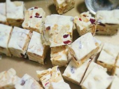 配方:棉花糖:200克,佳多美A03型0.2克,黃油:50克,奶粉:50克,堅果:100克(如花生、杏仁等),蔓越莓干:50克,餅干:200克。