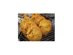 工藝:1.將面粉和泡多源A攪拌均勻倒入面缸內,加鹽和適量冷水拌勻拌透,再分數次加適量冷水,順著一個方向拌成薄而有勁,靜放一二小時后,放入發酵粉拌成面漿。2.將蘿卜洗凈,刨成絲,擠去水分,摻入面漿內拌和;將河蝦洗凈,剪去蝦須。3.將花生油入鍋用大火燒至七八成熱,將油墩子橫放入油鍋預熱一下,取出倒去油,用長柄調匙舀一些面漿墊滿模子底部,上放蘿卜絲,蘿卡絲中央再入滿面漿,并用調匙略略掀一下,當中再入一只河蝦。然后將模子放入大油鍋汆,火不宜太旺,以免產生外焦里生,待油墩子自行脫出模子浮起,變成金黃色,撈出瀝干油即成。