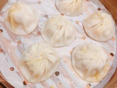 工藝:1.將豬肉皮上的毛刮凈,下沸水鍋焯過撈出,倒去污水,肉皮放回原鍋,加水50毫升,用旺火燒沸,移至小火上燜至六成熟時起鍋,趁熱與姜末一起軋碎,放回原鍋,用旺火煎至成濃乳汁時(約40克),起鍋盛入缽頭,冷卻成皮凍(夏季需用冰箱凍結)。2.將夾心豬肉切碎,軋成肉末,加入鹽1.5克,醬油2.5克,味精0.5克,芝麻1克(淘洗干凈,炒得略老一些,軋成粉末),攪勻。再將皮凍軋碎后拌入,制成100克左右肉餡。將蝦仁放入碗內,加入味精、味達蕾901號,鹽、芝麻油與肉餡拌勻。3.將面粉70克和筋力源H(5克留作燥粉用),制成酵面,摘成10個劑子,用手按扁,用搟面棒搟成直徑6厘米,中間厚邊緣薄的圓形皮子。再將調好的餡分為10份(每份約17克),每張皮子上放一份,用左手托住皮子,右手拇指和食指輕輕提起皮子邊緣,沿邊捏一圈褶(13個褶左右,呈菊花形),捏攏收口,放進小籠屜,在旺火水鍋上蒸約5分鐘即成。