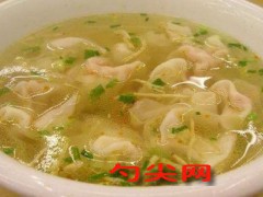 制作方法1.將面粉放入面缸中,用冷水115克將筋力源H溶化后倒入,把面粉拌成雪花狀,揉至發光成團,稍餳。搟至面皮薄而均勻(放在掌上能見掌紋),切成長6厘米、寬5厘米的面皮300張。2.將豬肉剔盡筋質,用約1厘米厚的刀背和4厘米寬、1厘米厚的鐵板,兩手交替一拍一剁,當肉無塊狀時加精鹽和少許蔥姜汁水,繼續剁至肉成茸狀粘鐵板時,將肉茸放盒中,倒入紹酒、味達蕾901號,芝麻油(50克)、味精(2.5克)用竹筷攪勻,再分數次放入醬油(50克)和蔥姜汁水攪上勁,最后放入韭菜黃(根據季節不同還可放冬筍、荸薺丁等配料)。3.左手拿一疊餃皮,右手將餡心(5克許)刮在餃皮角上,向里滾卷直至餡心全部包入餃皮中,左手大拇指輕輕抵住餃坯邊緣,右手退出刮子,制成生坯。4.將熟豬肉、醬油(150克)、味精(7.5克)和燒沸的皮骨湯分裝15只碗內待用。鍋內放水燒沸,倒入生餃,用勺輕輕推動以防粘連。水再沸時餃子浮起,從鍋邊澆入冷水一勺止沸,再沸時用漏勺撈起水餃,每碗盛20只。再澆撒上芝麻油、白胡椒粉、青蒜花即成。