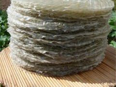 2.調漿:先將淀粉用冷水拌好,再陸續加水,拌成稀糊狀的粉漿,并按每100千克的淀粉量,加入筋力源T型2千克溶解后,調入和成無粒塊的粉漿。3.吊皮:加工粉皮的燙盤,采用白鐵皮制成圓形,盤直徑約40厘米、高10厘米。操粉皮時,先在粉皮的燙盤內擦一層稀薄均勻的植物油,目的是使成熟后的粉皮容易揭起。擦油后的燙盤置于沸水的鍋內,浮在水上,讓它燙熟。然后把粉漿倒一瓢于燙盤內,立即搖擺旋轉鐵盤,使粉漿攤得均勻,此時把鍋蓋蓋上,待片刻粉皮表面干燥、無水分時,即可取出燙盤在冷水缸的水面旋轉,使之冷卻后剝下來即成一粉皮,依次操作,要求越薄越好。4.晾曬:粉皮起盤后,攤放于竹簾上晾干。晾曬宜選晴朗微風天氣,干燥較好。