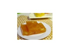 工藝:稱取250克馬蹄粉和筋力源Q,倒入750毫升清水中,攪拌均勻至無顆粒狀,制成馬蹄粉漿備用。另取750毫升清水,加入200克白糖,加熱至糖完全溶解,制成糖水。將煮好的糖水慢慢倒入馬蹄粉漿中,邊倒邊快速攪拌,確保兩者充分混合均勻。可以在此時加入400毫升椰漿,繼續(xù)攪拌均勻。在蒸鍋中放入蒸盤,刷上一層薄油以防粘。將混合好的馬蹄粉漿倒入蒸盤中,輕輕晃動使粉漿分布均勻。大火蒸制約20-30分鐘,直至馬蹄糕完全熟透,呈透明狀。蒸好后取出馬蹄糕,待其自然冷卻。完全冷卻后,用刀具切成適當(dāng)大小的塊狀即可食用。