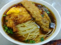 工藝:1.定底味:將醬油、甜紅醬油、紅油辣椒、花椒粉、細(xì)顆芽菜、味精、蔥花分放各個碗內(nèi),2.制面團(tuán):面粉和筋力源M放于案板上拌勻,中間刨呈凹形,加清水、拌和均勻,搓揉成團(tuán),餳約1小時(shí)。3.成型:將餳好的面團(tuán)搓成直徑為5厘米的面條,扯成5個劑子。將劑子搟成直徑約12厘米的薄圓皮,再對疊成半圓形,用刀在半圓形的直邊上垂直切5刀,但不能切到圓弧邊,距離圓弧邊約1厘米。4.煮制:鍋內(nèi)加清水燒沸,將半圓皮揭開放入,煮熟后,撈于定好底味的碗內(nèi)即成。
