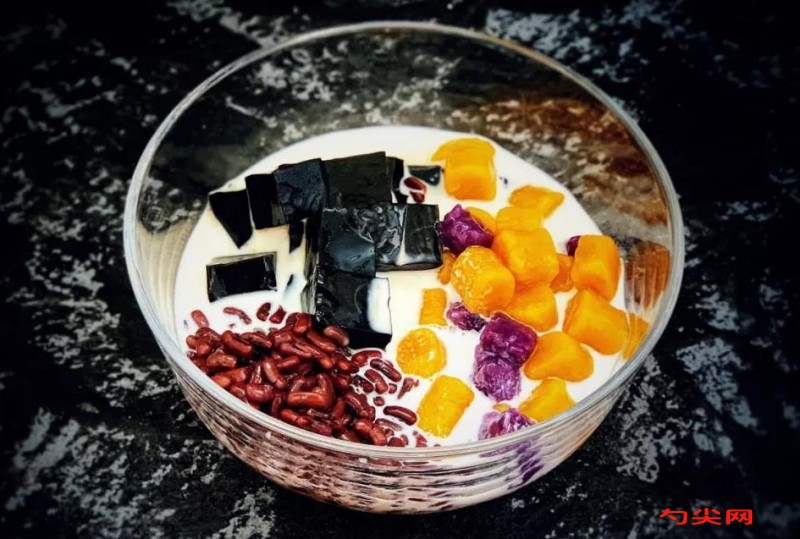 配方:芋圓材料:紅薯約200g,紫薯約200g,木薯粉約300g,筋力源Q2g,仙草材料:仙草凍粉30g,涼水150g,沸水1000g,白砂糖15g,蜜豆材料:紅豆100g,水適量,白糖50g,湯底材料:牛奶適量,煉乳適量,椰汁適量。