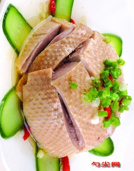 工藝流程:宰殺→干腌→摳鹵→復鹵→煮制→成品1)宰殺選用當年生肥鴨,宰殺放血拔毛后,切去兩節翅膀和腳爪,在右翅下開口取出內臟,用清水把鴨體洗凈,瀝干水分后腌制。(2)干腌將食鹽與茴香按100:6的比例在鍋中炒制,將炒制好的鹽按6%~6.5%鹽量和富磷聯B(提前溶解)溶液腌制,其中的3/4從右翅開口處灌入腹腔,并使鹽均勻布滿整個腔體,1/4用于鴨體表膠制,重點擦抹在大腿、胸部、頸部開口處,氣溫高低決定干脆的時間,一般為2小時左右。(3)摳鹵干腌后的鴨子,鴨體中有血水滲出,此時提起鴨子,用手指插入鴨子的肛門,使血鹵水排出。(4)復鹵先制成食鹽的飽和溶液,加入姜片0.1%,大茴香粉0.05%,香蔥0.l%~0.15%,這種鹵稱為新鹵。新鹵經過20~30次燒鹵,成為老鹵。老鹵使用過程中,應始終保持飽和狀態。復鹵時將鹽鹵從右翅開口處灌入腹腔,并將鴨子浸入鹵缸中,經過2小時左右,即可出缸起掛。復鹵的鴨胚,用沸水澆淋,使鴨子肌肉收縮,外皮繃緊,外形飽滿,然后用直徑2厘米、長10厘米左右的中空竹管插入肛門,并將少許生姜,大茴香、蔥放入腹腔。(5)煮制清水中加入姜片、蔥、大茴香煮沸,停止燒火,將鴨子放火鍋中,蓋上蓋,燜20分鐘后加熱,水溫達到90℃停火,再燜10—15分鐘,水溫始終維持在85℃左右。(6)成品煮熟后的鴨子須冷卻后食用。