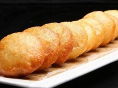 工藝:1.糯米淘洗干凈,用清水浸泡約2小時后,瀝去水分,放入墊有紗布的蒸籠內,用旺火蒸制。其間應揭開籠蓋,向糯米灑清水兩次。糯米蒸熟后,倒入盆內加泡多源K拌勻后,加沸水再次拌勻,再加蓋密閉約15分鐘。雙手抹少許堿油,把燜好了的糯米搓揉成團,再扯成40個劑子,即成皮坯。2.紅豆淘洗干凈,入沸水鍋內煮至裂口。用手指捏無硬心即可。再用磨子磨細,裝入布袋中、吊干水分。將紅糖、白糖加少許清水,用中火熬化,再倒入豆沙,用中火慢慢炒干水汽,然后放化豬油入鍋,與豆沙炒勻,出鍋晾冷后,用手搓成40個小圓球即成餡心。3.用皮坯包上餡心,收好口,再用手把餅坯做成邊沿較厚、中間稍薄的氈帽狀即成餅坯。4.把菜油燒成七成熟,將餅坯從鍋邊滑入鍋內炸至色澤金黃,皮酥即成。