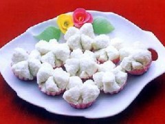 配方:吊漿粉(大米水磨粉)500克,白糖200克,酵種5克,泡多源QQ3克,玫瑰紅色素、堿水適量.